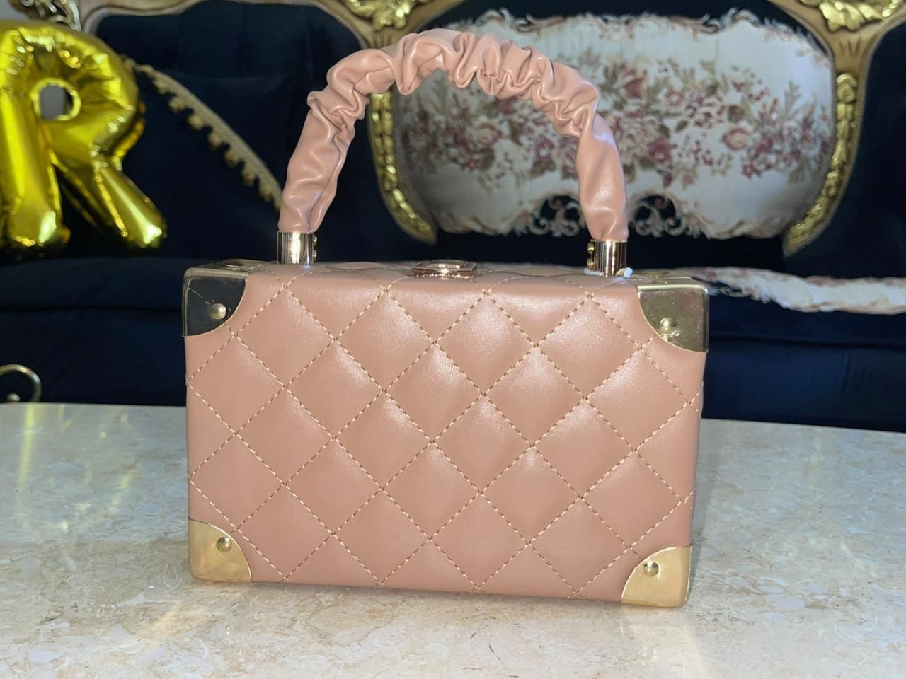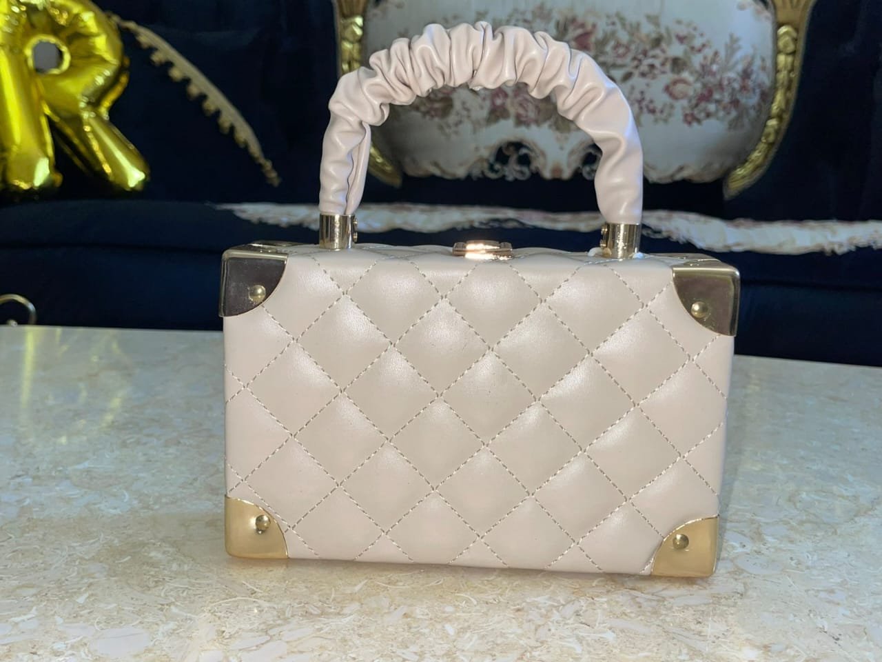 Ajoutez une touche de luxe à vos tenues avec ce superbe sac à main rigide matelassé, au design carré chic et moderne. Son style unique effet “coffret” avec coins dorés et poignée froncée lui donne un aspect raffiné et tendance. 💎